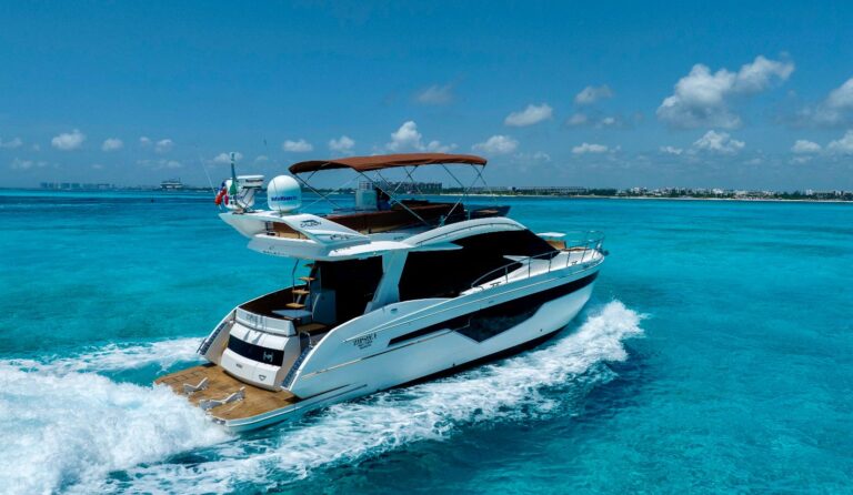 Set sail on our luxurious 53ft Galeon Yacht perfect for weddings, bachelor/bachelorette parties, or any celebration. Departing from Puerto Aventuras Marina, this yacht accommodates up to 15 guests, offering gourmet food, a premium open bar, paddleboards, and an amazing inside outside bar.